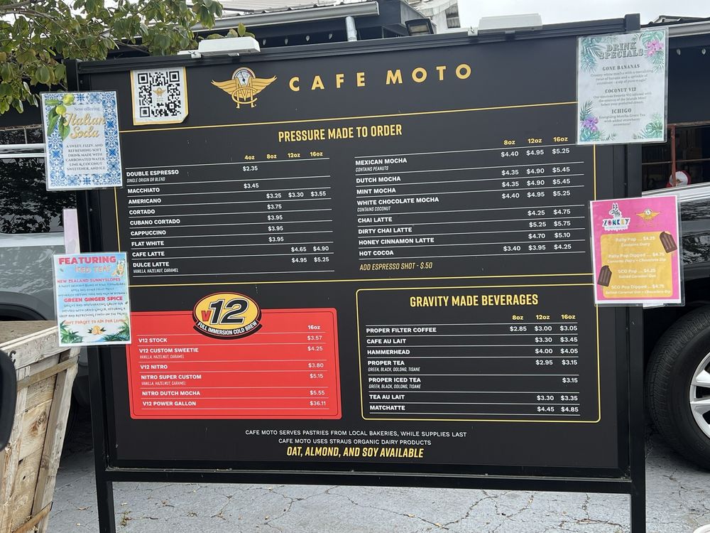 Cafe Moto is a standout cafe in San Diego, known for its exceptional drive-thru coffee experience. Customers rave about the top-notch coffee quality and friendly service. The menu boasts a wide range of beverages including flat whites, macchiatos, vanilla lattes, and seasonal specials like the Berrykin. The knowledgeable staff offer great recommendations on coffee beans and drinks, creating a pleasant and informative atmosphere. The cafe also caters to diverse dietary needs with vegan options and offers a pup cup for furry companions. With a drive-thru, outdoor seating, and a welcoming atmosphere, Cafe Moto is a must-visit spot for coffee enthusiasts in the area.