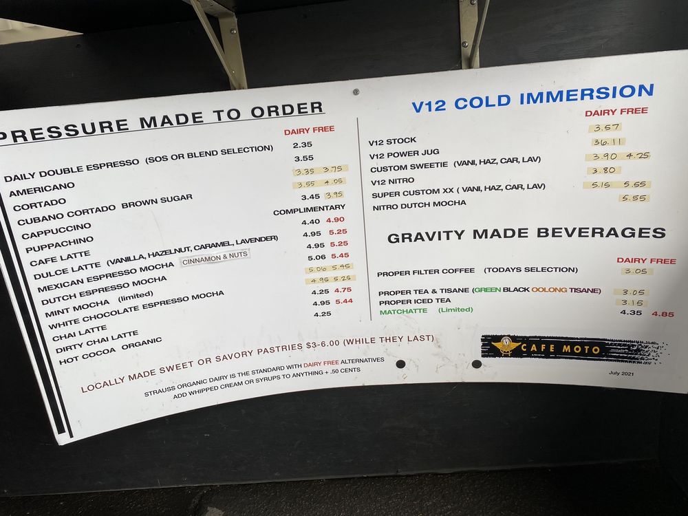 Cafe Moto Menu